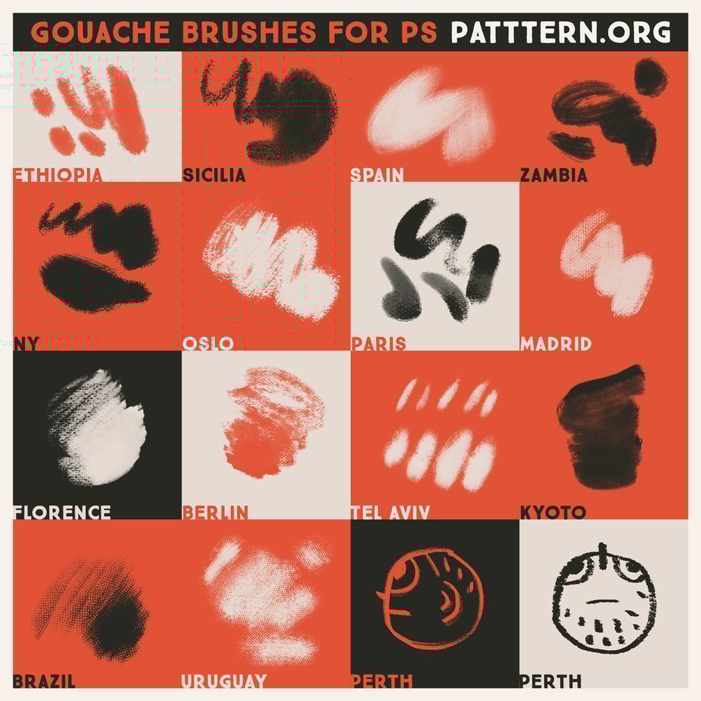 In the "Gouache" brush set, I created carefully, 30 high-quality brushes that are superĀ fun to work with for Art making, illustrating and animating in Photoshop.